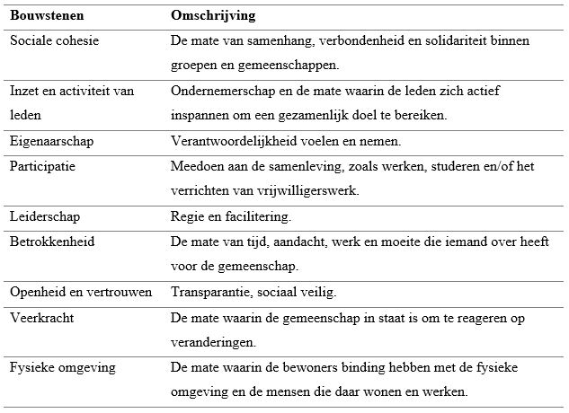 Tabel 2. De negen bouwstenen voor een vitale gemeenschap in de eerste versie van de quick-scan