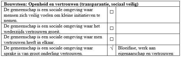 Tabel 3. Voorbeeldvragen uit de quick-scan voor de bouwsteen ‘openheid en vertrouwen’