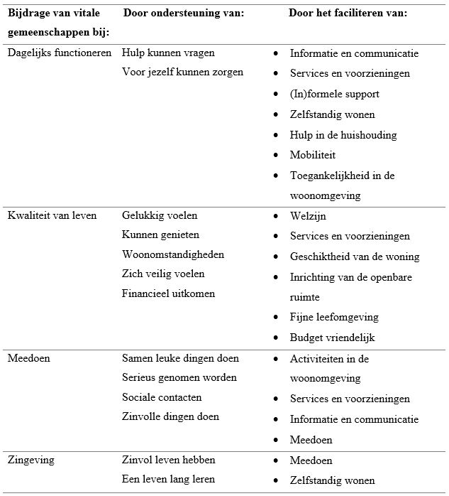 Tabel 1. Bijdrage van vitale gemeenschappen volgens zelfstandig wonende ouderen