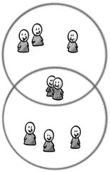 We kozen voor gesprekken omdat vroeg in ons onderzoek al bleek dat het heel moeilijk is om in je eentje over je toekomst te denken. Vaak droom je weg, of raak je vast, of houd je er gewoon mee op. In een gesprek met een ander kom je verder. Figuur 2 laat zien dat we deze gesprekken met drie partijen kunnen voeren. In de persoonlijke cirkel zitten familie, vrienden en buren. In de formele cirkel zitten instanties, zoals gemeenten, zorginstellingen. In de overlap zitten we zelf. Daar zie je in de figuur twee poppetjes getekend, omdat in urgente situaties, zoals bij een medische diagnose of het spreken over een verhuizing naar een zorginstelling, we vaak een secondant bij ons hebben, die het hoofd helderder heeft. Dat levert drie soorten gesprekken: met instanties, met familie, met onszelf.