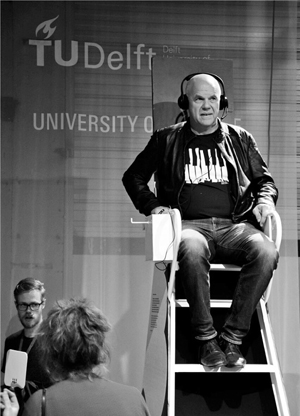 Naast gesprekken met anderen hebben we ook verkend hoe het voor ons is om onszelf op latere leeftijd voor te stellen. Een van de technieken die helpt om de toekomst op te rekken is te speculeren over een veel verdere toekomst. In een installatie bij een tentoonstelling op de Dutch Design Week beklommen bezoekers een hoge stoel en werden ze gevraagd om zich voor te stellen dat zij 130 jaar oud zouden worden (zie figuur 5). Vervolgens werd gevraagd naar wat voor gevoel dit bij hen opriep en wat zij met hun langere leven zouden doen. Dit bleek een zeer krachtige oefening en ruim duizend bezoekers spraken hun ideeen uit. Bovendien bleek dat vrijwel elke bezoeker die van de stoel afdaalde behoefte had om gelijk met anderen van gedachten te wisselen.