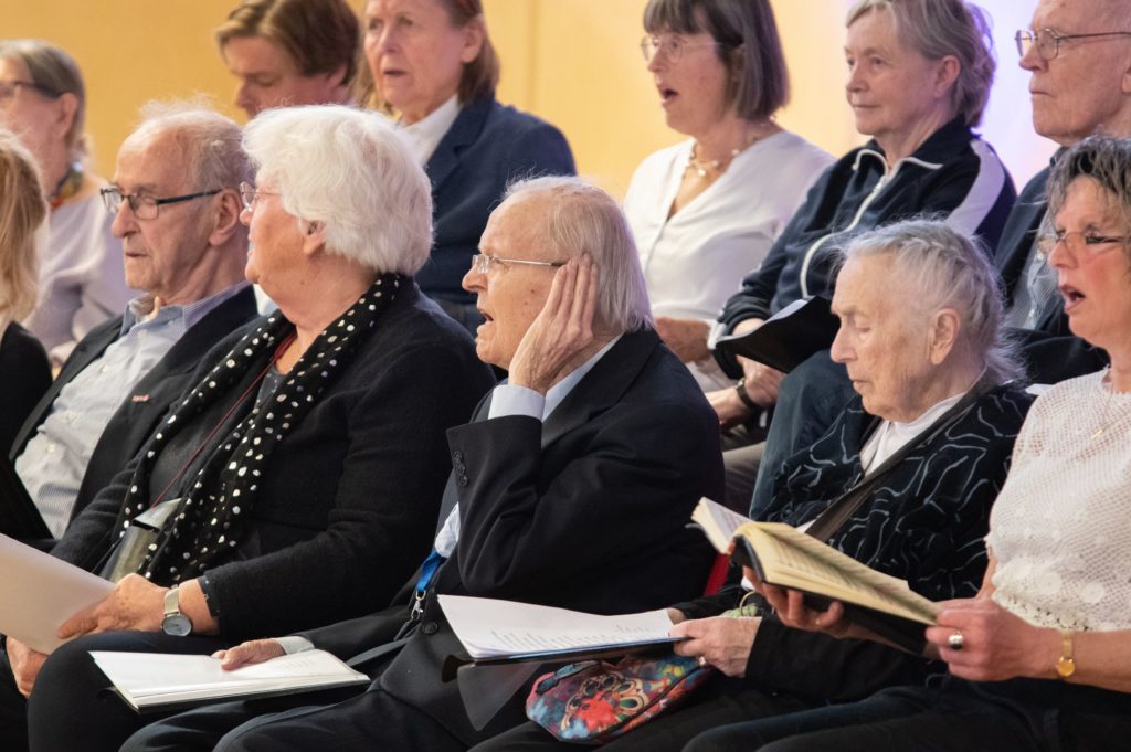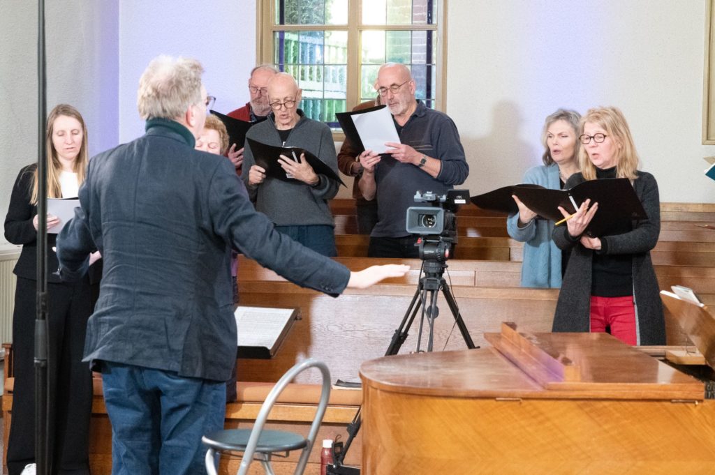 “…het is net als een sport: je kunt het niet in je eentje. En je brengt iets tot stand wat je in je eentje niet kunt, en je doet dat samen.” Zanger zonder dementie bij ‘live’ repetitie in het basiskoor.