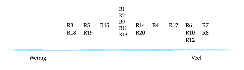 | Noot: Per vraag/kenmerk: het aantal respondenten naar drie categorieën van herkenning, en op volgorde van kenmerken met de meeste tot minste herkenning. Het totaal aantal respondenten is twintig, maar niet elke respondent heeft elke vraag beantwoord. | |||