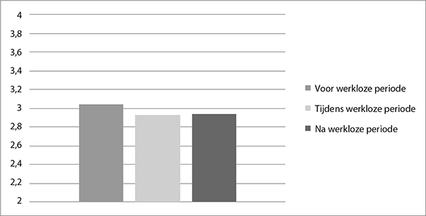 Figuur 2 laat zien dat werkloosheid bij deze groep 50-plussers ook duidelijke gevolgen heeft voor de ervaren gezondheid. Voor de werkloosheid gaven mensen een kleine, maar significant betere beoordeling van hun gezondheid dan in de periode dat ze werkloos waren. Dit negatieve effect trekt na afloop van de periode van werkloosheid enigszins weg.