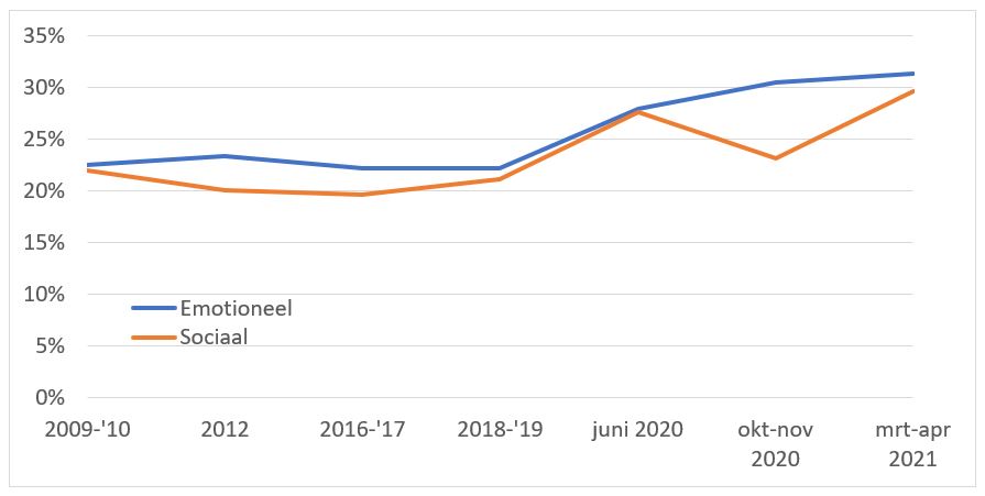 Figuur 1. Ontwikkeling van de prevalentie van emotionele en sociale eenzaamheid