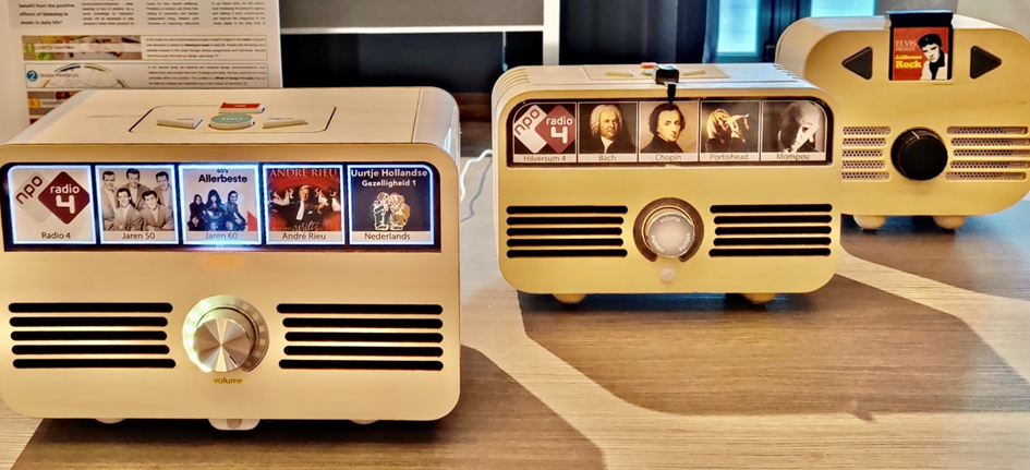 Figuur 1. Meerdere versies van de muziekspeler uit onderzoek van Rik Wesselink, lectoraat ICT Innovaties in de Zorg, Hogeschool Windesheim