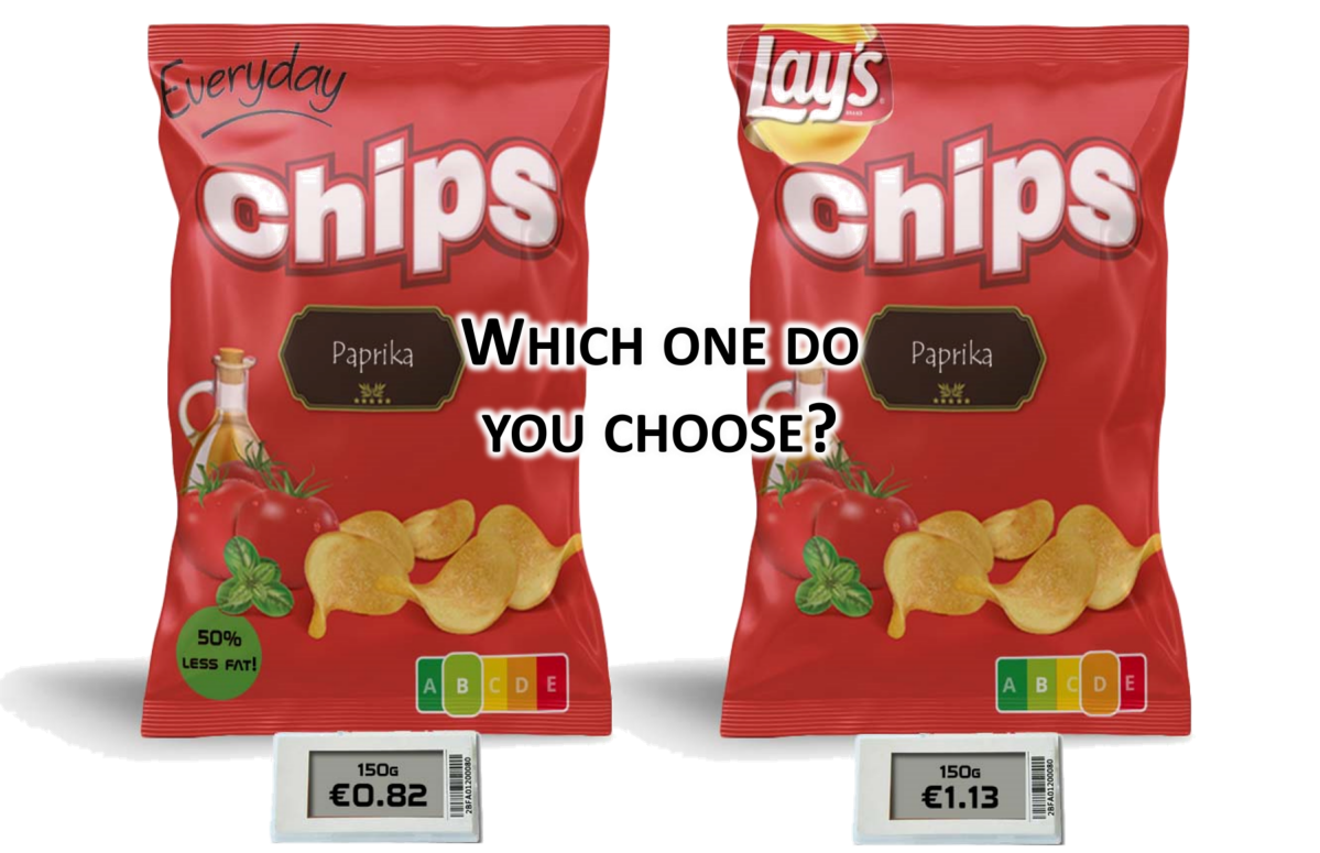 Een tweede factor is prijs. Het is logisch dat we dit mee onderzoeken, want de prijs speelt een rol in veel voedingskeuzes. Maar het kan ook erg interessant zijn om eens naar de Nutri-Score te kijken zonder dat de prijs zich komt moeien.