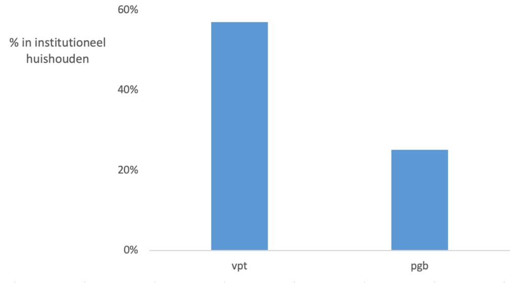 Ook ontvangers van PGB en VPT wonen vaak in een instelling