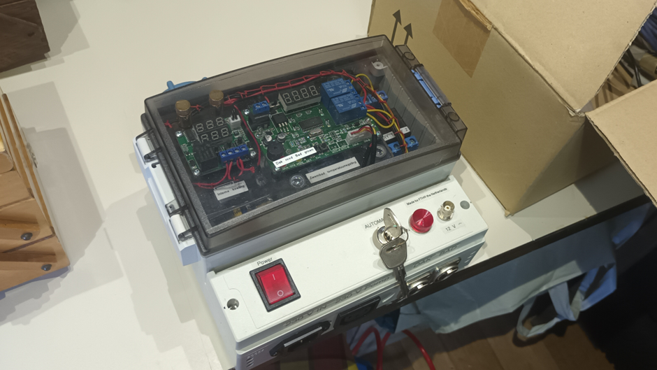 Op zijn beurt leidde dat uiteindelijk tot de ontwikkeling van een uitgebreide schakelkast (zie figuur 1) waarmee de temperatuur van het zwembadwater en het water in de zwarte slangen gemeten kon worden en die afhankelijk van de omstandigheden de pomp op het juiste moment in- en uitschakelde, zodat het zwembadwater op een zo optimaal mogelijke temperatuur gehouden kon worden. Deze zelfgebouwde schakelkast droeg daarmee direct bij aan de verlichting van zijn reumatische klachten en die van zijn vrouw.